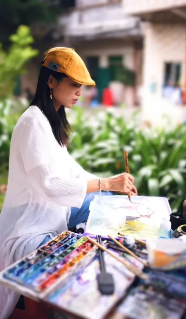 Tina Wang is a self-taught watercolor artist and plein air painter based in Dongguan, China. She is known for painting from life, capturing places as they are, in the moment through urban sketching and on-location watercolor. Her main subjects include traditional architecture, street scenes, and nature, expressed with a balance of structure and feeling. Alongside her plein air practice, she has strong experience in portraits, still life, and floral works, bringing careful observation and emotional depth to each subject.